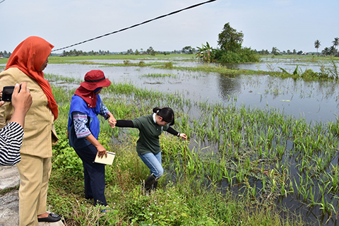 インドネシア(低湿地稲作水田の水深確認)