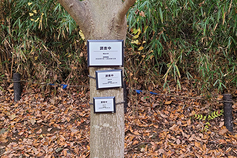 樹名板に設置したヤモリトラップ